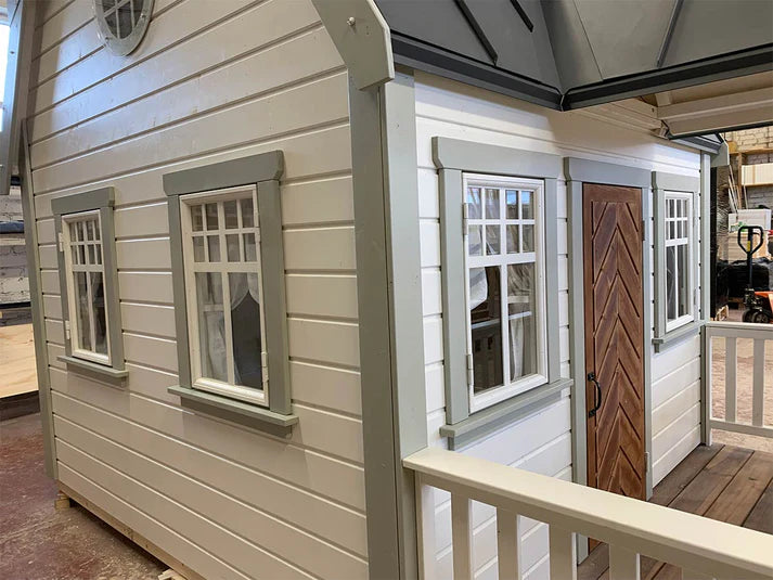 The Grand Farmhouse Playhouse is a luxury handcrafted wooden playhouse designed to feel like a real miniature home. Built from solid natural wood and protected with weather-resistant materials, it offers a spacious, safe, and durable outdoor play environment for growing families.